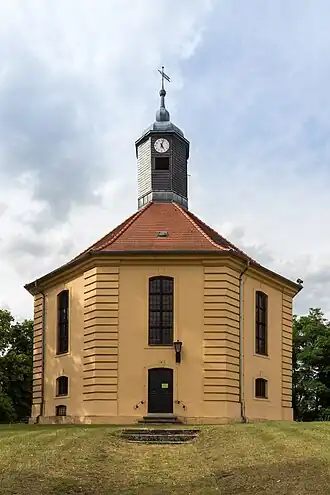Das Bauwerk wurde auf Initiative von Friedrich Wilhelm von Rochow (1689–1759), einem preußischer Generalleutnant erbaut. Er galt als ein enger Vertrauter des Königs Friedrich Wilhelms I. sowie auch des Kronprinzen und späteren Königs Friedrich II. Er beauftragte den Berliner Baumeister Christian August Naumann, der in den Jahren 1750 bis 1752 einen achteckigen Zentralbau errichtete. Das Dehio-Handbuch würdigt den Entwurf als „eines der wenigen erhaltenen Beispiele dieses Berliner Bautypus“.