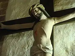 Über der Sakristeitür befindet sich ein altes Kruzifix, das sich einst wohl über dem Triumphbogen im Chor befand. Das Kruzifix ist älter als Altar, Kanzel und Empore, seine Farbfassung ist jedoch jüngeren Datums.