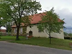 Die spätgotische Saalkirche wurde 1666–70 unter Georg von Derfflinger erweitert und renoviert. Sie wurde zum Teil im Zweiten Weltkrieg zerstört, danach wieder aufgebaut und 2000 bis 2003 saniert. Der Kirchturm im Westen aus Feldsteinen ist nur noch als Ruine erhalten.
