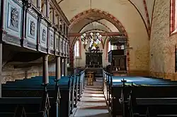 - In der Kirche werden etliche sakrale Gegenstände wie zwei silberne Kelche aus der Zeit um 1500 und 1654 aufbewahrt. Der ältere Kelch wurde 1627 erneuert. Der Kelch und die Patene von 1792 sind aus vergoldetem Silber angefertigt. Die vergoldete Dose aus Silber ist eine Arbeit von 1633, die silberne Kanne wurde 1695 hergestellt.[6]