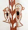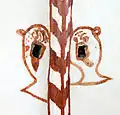 Auffällig ist die aus der Entstehungszeit der Kirche stammende Bemalung.[2] Mit roter Farbe wurde die Form der Kreuzgewölbe betont. Um die Wasserlöcher in drei Ecken des Langhauses wurden Köpfe mit weit aufgerissenen Augen und ausgestreckten Zungen gemalt. In der vierten Ecke wurden Spinnennetze um die Wasserlöcher gemalt. In der Ostkappe des Gewölbes im Kirchenschiff ist ein Christuskopf als einfache lineare Pinselzeichnung dargestellt. Es gibt eine Deutung, nach der es sich bei den Fratzen um Eulen handelt. Entsprechend der christlichen Symbolik bringt Christus Nachttieren als Vertretern der geistigen Finsternis das Licht.[3] Zusätzlich gibt es in Chor und Mittelschiff eine größere Zahl Tatzenkreuze. Zur Zeit abgedeckt und daher nicht sichtbar sind im Kirchenschiff an sechs Stellen szenische figürliche Darstellungen erhalten.