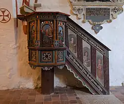 Die Kanzel stammt aus dem Jahr 1677 und damit aus der Zeit kurz nach Ende des für Mecklenburg verheerenden Dreißigjährigen Krieges. Dargestellt sind auf vier Feldern die Evangelisten. Der Aufgang ist jünger und stammt vermutlich aus dem 18. Jahrhundert. Neben drei als Halbbildnisse dargestellten Frauenfiguren schmücken ihn die Inschriften Predige das Wort, halt an, sey es zu Rechter Zeit oder zur Unzeit als Aufforderung an den Priester sowie Das Wachen und Beten ist allzeit von nöthen für die Gemeinde.