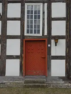 Das steile Dach ist mit handgestrichenen Biberschwanzziegeln eingedeckt. Anders als üblich steht der freistehende Kirchturm nicht im Westen, sondern im Südosten des Gebäudes. Er ist verbrettert und trägt ein überstehendes Pyramidendach, auf dessen Kupferspitze die Wetterfahne mit der Jahreszahl 1732 zu sehen ist.