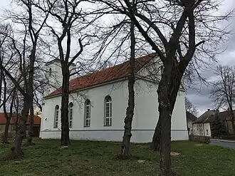 Die Alte Hauptstraße führt von Nordwesten kommend in südöstlicher Richtung durch den Ort. Im südlichen Bereich des historischen Dorfangers steht die Kirche auf einem Grundstück, das nicht eingefriedet ist.