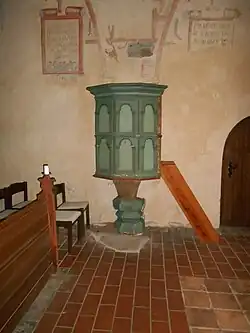 In der Ostwand ist eine Sakramentsnische und in der Nordwand ein alter Eucharistie-Schrank mit Holztür und Eisengitter eingelassen.