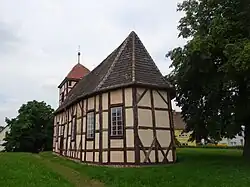 Das Kirchengebäude ist ein Fachwerkbau mit fünfseitigem Ostschluss. Der quadratische Westturm des Gebäudes besitzt ein leicht geschweiftes Zeltdach. Im Innenraum befinden sich eine muldenförmige Bretterdecke sowie Emporen im Westen und Norden.