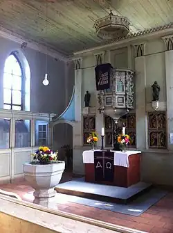 In die neugotische Altarwand wurden Teile des aus der ersten Hälfte des 16. Jahrhunderts stammenden Schnitzaltar eingefügt. Der Mittelschrein zeigt Anna selbdritt, umgeben von vier Heiligenfiguren, die mehrmals übermalt wurden. Die Flügel enthalten – in zwei Reihen übereinander angeordnet – jeweils vier weitere Heilige.[7]