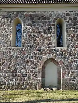 Ein zweifach gestuftes Westportal erschließt das Bauwerk, ein Nordportal und eines der Südportale sind vermauert. Die Lanzettfenster sind im ursprünglichen Zustand erhalten; in der Ostwand ist eine gestaffelte Dreifenstergruppe angeordnet, im Giebel zwei schmale Blenden.