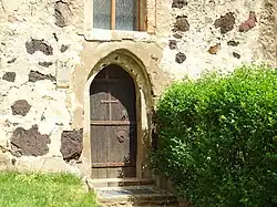 Das Bauwerk befindet sich inmitten eines ehemaligen Friedhofs, der auf dem ovalen Dorfanger des Dorfes zu finden ist.[3] Umfangreiche Umbauarbeiten erfuhr das Bauwerk im 18. Jahrhundert[1] und im Jahre 1846. Letztere prägen die Kirche bis in die Gegenwart.[3][1] Nach einem Bevölkerungsanstieg ließ die Kirchengemeinde eine große und hufeisenförmige Empore einbauen.[5]