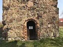 Das Bauwerk entstand im Wesentlichen aus Mischmauerwerk, d. h. aus unbehauenen und nicht lagig geschichteten Feldsteinen, die mit Gesteinssplittern ausgefüllt wurden. Bei zahlreichen Gebäudeecken kam Raseneisenstein zum Einsatz, bei Um- und Ausbauarbeiten meist Mauerstein. Der Chor ist gerade und nicht eingezogen. An der Ostseite sind drei gedrückt-segmentbogenförmige Fenster. Sie waren ursprünglich größer und rundbogenförmig. Im darüberliegenden Giebel ist mittig eine schmale und hochrechteckige Öffnung.