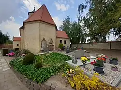 Im Außenbereich an der Ostwand befinden sich zwei barocke Grabsteine mit Inschriften für Magdalena von Werder (gestorben 1675) und Christoph Wilhelm von Werder.
