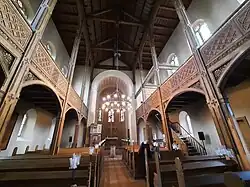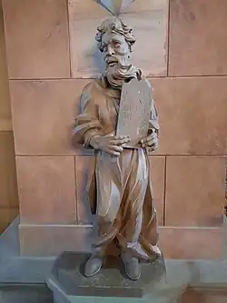 Im Vorraum der Kirche befindet sich eine Gedenktafel für die Opfer des Ersten Weltkriegs.[4]
