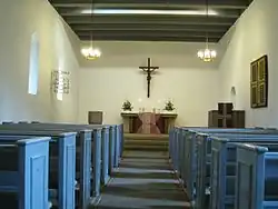 Nach dem Zweiten Weltkrieg wurde ein Gedenkkreuz zum Andenken an verschollene Gemeindeglieder aufgestellt.[2] Die Inschrift auf der Vorderseite lautet „Vor Gott. 1945.“ und auf der Rückseite „Wer weiß wo?“