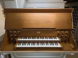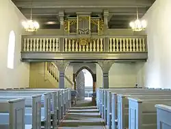 Die heutige Orgel wurde 1941 auf der etwa gleichzeitig neuerbauten Empore vor der Westwand von der Firma Alexander Schuke Potsdam Orgelbau eingebaut. Ihr Prospekt könnte aus dem frühen 18. Jahrhundert stammen, ist jedoch eine Nachempfindung eines barocken Orgelgehäuses, wie die Jahreszahl „1941“ in der großen Kartusche unter dem Prospektpfeifenwerk inmitten reichen Schnitzwerks zeigt.