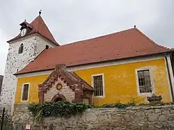 Die Kirche ist ein einschiffiger, rechteckiger Saalbau. Der Westturm steht auf quadratischem Grundriss und besitzt ein Pyramidendach mit Dachgauben für die Turmuhr. Die Mauern des Kirchenschiffes sind im Süden und Osten gelb verputzt, die Nordseite ist steinsichtig wie der Turm. Die Fenster sind rechteckig, der Turm besitzt rundbogige Schallfenster. Der aus Klinkersteinen gemauerte Anbau auf der Südseite zeigt historistische Ziergiebel.