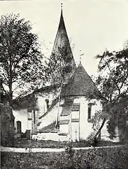 Der vermutlich älteste Teil der Kirche,[2] der apsisartige „Anbau“ im Osten, ist niedriger als der Hauptbau und über rundem Grundriss errichtet. Er hat drei Fensteröffnungen und vier Strebepfeiler. Zwei breite Wandverstärkungen wurden zur Stabilisierung später hinzugefügt. Den oberen Abschluss bildet ein Kegeldach mit Ziegeldeckung und Wetterfahne als Bekrönung.