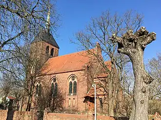 Im ausgehenden 19. Jahrhundert stand im Ort eine Fachwerkkirche, über deren Baugeschichte bislang nicht viel bekannt ist. Sie war möglicherweise bereits 1860 durch einen Großbrand im Dorf in Mitleidenschaft gezogen worden. 1895 entschloss sich die Kirchengemeinde zu einem Neubau und riss dazu den spätestens um diese Zeit baufälligen Vorgängerbau ab.