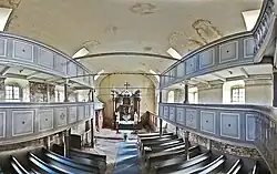 Die Dorfkirche befindet sich in der bestimmenden Lage des einstigen Dorfes in der Mitte des Ortsteils und ist von einem großen mit einer Mauer umfriedeten Kirchhof umgeben.