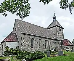 Die Kirche geht auf einen romanischen Bau aus der ersten Hälfte des 13. Jahrhunderts zurück,[3] ehemals eine echte Chorturmkirche mit dem Chorbereich im Erdgeschoss des Turmes und einer anschließenden Apsis.