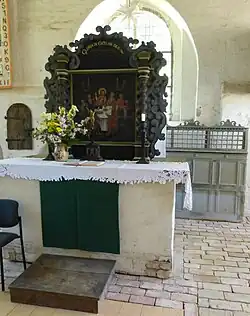 Bis Ende der 1950er Jahre hatte die Kirche einen mittig angeordneten Kanzelaltar. Von diesem sind noch die Kanzel aus dem 16. oder 17. Jahrhundert mit Abbildungen der Evangelisten und der Altaraufsatz aus dem 17. Jahrhundert erhalten. Letzterer mit einer barocken Darstellung des Abendmahls. Der Altartisch wird auf 1602 datiert.