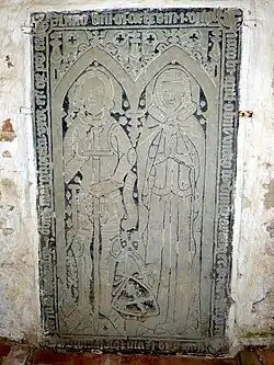 In der Kirche befinden sich mehrere Grabplatten. Eine Doppelgrabplatte, die an der nördlichen Wand das ehemalige Portal verdeckt, zeigt Vicko von Stedingk († 1368)[3] in Rüstung und dessen Frau Margarethe († 1368)[3] mit langem Gewand und netzartiger Kopfbedeckung.