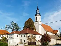 Die breitgelagerte Saalkirche ist mit dreiseitigem Ostschluss und schlankem Westturm mit einer harmonischen Haube versehen. Das heutige Bauwerk wurde um 1550 errichtet. Das Äußere ist schmucklos, an der Südseite ist die Sakristei angebaut. Das Innere des Bauwerks wurde durch Erneuerungen im 18. Jahrhundert verändert. Die flache Decke ist durch Stuckprofile gegliedert.