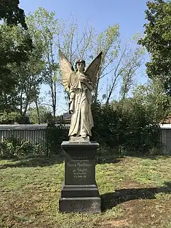 Auf dem Friedhof erinnert am südöstlichen Logenanbau ein Urnengrabmal an den 1828 verstorbenen J. H. F. Bering sowie seine 1803 verstorbene Frau. Es besteht aus einem quadratischen Sockel, darüber eine Inschriftenkartusche sowie darauf die Urne. Südwestlich erinnert ein Denkmal an die Gefallenen der Weltkriege. Westlich befinden sich die Gräber des ehemaligen Gutsbesitzers Max Haellmigk und seiner Frau Laura.