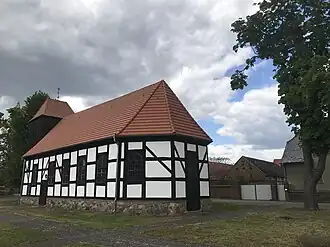 Anfang des 18. Jahrhunderts befand sich der Ort im Einfluss derer von Stutterheim. Adam Ernst von Stutterheim ließ 1704 die Fachwerkkirche errichten. Sie wurde 1707 durch eine Patronatsloge ergänzt. Von 1802 bis 1804 verlängerten Handwerker das Bauwerk nach Westen Im gleichen Jahr errichteten Handwerker den freistehenden Westturm. 1896 war eine Sanierung des westlichen Giebels erforderlich. 1993 restaurierte die Kirchengemeinde das Bauwerk.