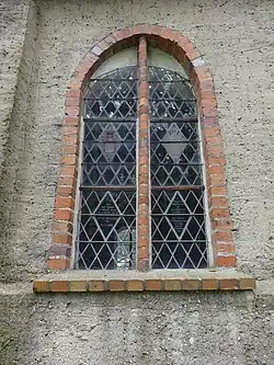 Die Kirche wurde aus Feldsteinen sowie aus Mauerziegeln errichtet und anschließend mit einem gräulichen Putz versehen. Der Chor mit einem Fünfachtelschluss ist stark eingezogen und mit dreifach gestuften Strebepfeilern abgestützt. Dessen Rundbogenfenster besitzen ein dreifach gestuftes Gewände, das ebenfalls mit Mauerziegeln eingefasst ist.