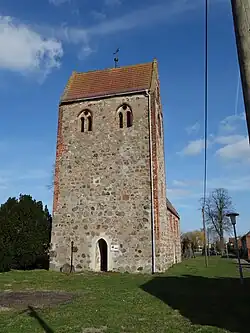 Die Kirche ist ein Saalbau aus Feldsteinmauerwerk mit Westturm von Schiffsbreite, die Kanten und Wandöffnungen in Backstein, vermutlich aus der zweiten Hälfte des 14. Jahrhunderts und ist eng verwandt den Dorfkirchen von Reckenthin und Vehlin. Die Ostwand ist im ursprünglichen Zustand mit zwei spitzbogigen Fenstern und zentraler segmentbogiger Nische erhalten; ein schlichtes spitzbogiges Westportal erschließt das Bauwerk, das stichbogige Südportal wurde zugesetzt, die Schiffsfenster vergrößert. Der Turm ist mit gekuppelten Schallöffnungen versehen, der Abschluss erfolgt durch ein Satteldach zwischen schmucklosen Giebeln. Der Turmraum ist mit einem Quertonnengewölbe geschlossen; ein kleiner spitzbogiger Durchgang führt zur flachgedeckten Kirche.
