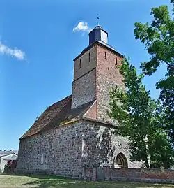 Die Kirche ist ein Saalbau aus Feldsteinmauerwerk mit etwas breiterem Westturm aus der zweiten Hälfte des 13. Jahrhunderts. Der quadratische Turmoberteil wurde in Mischmauerwerk mit Backsteinausbesserungen im Jahr 1598 von Andreas Hannemann erbaut. Das Bauwerk steht auf einem geschrägten Sockel und wird durch ein gestuftes Westportal erschlossen; in der Ostwand ist eine gestaffelte Dreifenstergruppe eingelassen, im Giebel sitzen drei Rundbogenblenden. Im Süden wurde eine Sakristei als Backsteinanbau in der zweiten Hälfte des 19. Jahrhunderts erbaut. Innen ist das Bauwerk mit Balkendecke und Westempore ausgestaltet, die große Spitzbogenöffnung zum Turm ist teilweise vermauert.