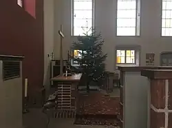 Die Kirchenausstattung ist einheitlich modern und stammt aus der Zeit nach dem Zweiten Weltkrieg. Das Bauwerk ist in seinem Innern flach gedeckt. Die Kirchengemeinde baute eine Winterkirche ein und ließ die Empore abtrennen, um die Räume separat nutzen zu können.