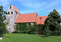 Die Saalkirche ist spätromanischen Ursprungs und wurde aus behauenen Feldsteinen erbaut. Aus der Frühzeit sind an der Südseite der Kirche noch zwei, allerdings vermauerte, romanische Fenster. Zwei romanische Portale befinden sich auch an der Nordseite, wobei das östliche vermauert ist.