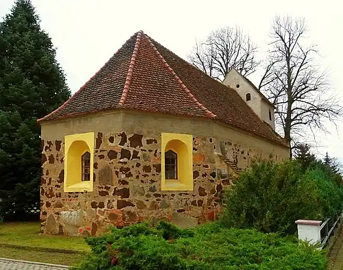 - ↑ Das Pfarrsprengel Tröbitz ( des vom 2. September 2018 im Internet Archive) Info: Der Archivlink wurde automatisch eingesetzt und noch nicht geprüft. Bitte prüfe Original- und Archivlink gemäß Anleitung und entferne dann diesen Hinweis. auf der Homepage des Kirchenkreises Niederlausitz, abgerufen am 2. November 2017.