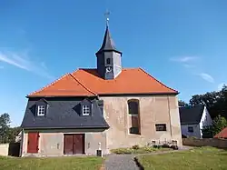 Diese Dorfkirche wurde auf dem Platz einer unbekannten Vorgängerin als Saalkirche erbaut. Sie ist mit farbigen Glasfenstern ausgestattet. Im Kirchenschiff befindet sich eine dreiseitige Empore. Die Ausstattung ist weitgehend in einem guten Zustand.