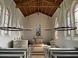 Die Kanzel wurde aus Stein errichtet, ebenso die achteckige Fünte. Zur weiteren Ausstattung gehören vier Rundleuchter aus Eichenholz sowie eine Orgel, die Carl Ludwig Gesell im Jahr 1868 baute. Sie besitzt neun Register, die sich auf zwei Manuale und Pedal verteilen.
