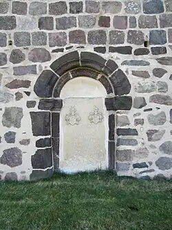 Außen ist im zugesetzten Nordportal ein Grabstein des Caspar Siegismund von Muschwitz († 1708) angebracht.
