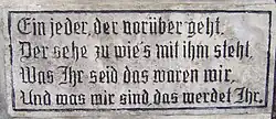 Bemerkenswert ist der an der Friedhofsmauer angebrachte Sinnspruch: