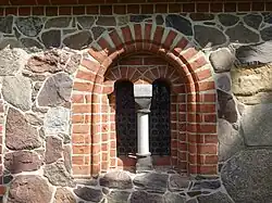 Die Saalkirche wurde aus kleinteiligen, aber lageweise geschichteten Feldsteinen errichtet, die bis auf die Ecken nur wenig behauen wurden. An der Südwand des Kirchenschiffs sind im oberen Bereich in Richtung Turm zwei große, in Richtung Chor ein großes und ein deutlich kleineres, segmentbogenförmiges Fenster vorhanden. In Richtung Westturm findet der Betrachter darunter eine weitere kleinere Öffnung, die von einem mit rötlichem Mauerstein eingefasstem Portal begleitet wird, das sich leicht links unterhalb des mittleren Fensters befindet. Am leicht eingezogenen Chor ist eine Öffnung zu erkennen, die von einem nachträglich angebrachten, rechteckigen Vorbau teilweise verdeckt wird. Er kann durch einen ebenfalls in rötlichem Mauerstein eingefassten Portal betreten werden. Daneben ist ein gekuppeltes und dreifach gestuftes Bleiglasfenster mit einer Säule vorhanden. Die Feldsteine sind in diesem Bereich deutlich größer und ungleichmäßiger geschichtet, als es im restlichen Bauwerk der Fall ist. Die Apsis ist ebenfalls eingezogen und besitzt nur ein mittig angebrachtes, bienenkorbförmiges Fenster sowie ein Kegeldach. Im Giebel des Chors wurden im unteren Bereich Feldsteine, darüber Mauersteine verwendet, die ein Kreuz formen. An der nördlichen Kirchenwand sind zwei große Fenster vorhanden. Das dritte, westlich gelegene Fenster ist deutlich kleiner. Es wird von einer weiteren Öffnung sowie einer Pforte ergänzt, deren Lage in etwa mit der auf der Südwand identisch sind. Sie stammen aus der Bauzeit der Kirche. Im Westen des Bauwerks steht der leicht eingezogene, in seinem Grundriss quadratische Turm, der bis in etwa zur Höhe der Traufe des Kirchenschiffs aus Feldsteinen erbaut wurde. Das obere Geschoss besteht aus Fachwerk mit schwarzem Holz, dessen Gefach mit rötlichem Ziegel aufgefüllt wurde. Je zwei kleine bienenkorbförmige Öffnungen an der West- und Ostseite sowie drei gleichartige Öffnungen an der Nord- und Südseite im mittleren Bereich dienen als Klangarkade. Oberhalb des Turms ist ein Walmdach mit je einer Turmkugel und einem Kreuz bzw. Wetterfahne. Kirchenschiff und Chor sind mit rotem Biberschwanz eingedeckt und besitzen je eine Fledermausgaube pro Seite und Bauteil. Es fällt auf, dass am Westturm kein Portal vorhanden ist, sondern lediglich eine kleine Pforte an der Nordseite.
