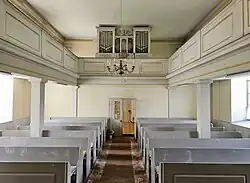 Die Orgel stammt aus der Bauzeit der Kirche; der Erbauer ist unbekannt. Das Werk umfasst 11 Register auf einem Manual und Pedal. Die Disposition lautet:[2]