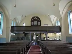 Unterhalb der Westempore hat die Kirchengemeinde eine Winterkirche eingerichtet. Darüber steht eine Orgel, die von den Gebrüdern Dinse im Jahr 1911 errichtet wurde. Im Ersten Weltkrieg musste die Kirchengemeinde die Pfeifen im Zuge einer Metallspende des deutschen Volkes abgeben. Das Instrument konnte erst im Jahr 2015 durch die Firma Alexander Schuke Potsdam Orgelbau wiederhergestellt werden. Die Disposition lautet wie folgt:[2]