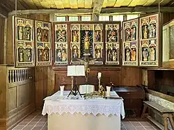 - ↑ Informationsschrift: Festtagsseite des Dreiflügelaltars in der Kapelle Wootz, Juni 2024.
