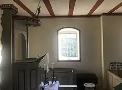 Der Kanzelaltar stammt wie auch das Gestühl aus der Mitte des 19. Jahrhunderts und wird im Dehio-Handbuch als „schlicht“ bezeichnet. Zur weiteren Kirchenausstattung gehört ein Zinnleuchter aus dem Jahr 1993 sowie eine Bronzeglocke aus dem 16. Jahrhundert.[1] An der nördlichen Außenwand sowie an der Ostwand des Chors stehen Epitaphe aus dem Ende des 17. sowie dem ersten Drittel des 18. Jahrhunderts, die an Mitglieder der Familie Hohendorff erinnern.