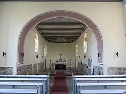 Die Dorfkirche ist aus Feldsteinen gemauert. Im Bereich des Kirchenschiffs und des Chores sind diese unverputzt. Nach Süden befindet sich im Schiff ein kleines rundbogiges Portal. Die Fenster von Schiff und Chor sind segmentbogig gestaltet. Sie sind mit Ziegelsteinen ummauert. Der Chorraum ist etwas schmaler und in der Höhe niedriger als das Schiff. Der dadurch sichtbare Giebel des Schiffs weist ein Fachwerk auf. An den Chor schließt sich eine lange Apsis an. Die Fenster der Apsis sind korbbogig gestaltet. Das Mauerwerk ist in diesem Bereich verputzt, auch wenn dieser an vielen Stellen bereits abgebröckelt ist. Das Dach über Schiff, Chor und Apsis ist mit roten Biberschwänzen eingedeckt.