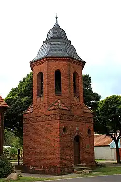 1907 wurde unmittelbar neben der Zeischaer Schule ein Glockenturm errichtet.[1] Für den Turm wurde wiederum roter Backstein verwendet. Und fast drei Jahre nach der Eröffnung der Schule folgte am 14. Juli 1907 die Weihung einer von Weiland beschafften und gespendeten Glocke.[2][3][1] Diese Glocke stammt aus dem Jahre 1807 und wurde in der Glockengießerei Heinrich August Weinhold in Dresden gegossen.[1]