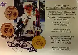 Dorina Pieper gehörte gegen Ende der 1980er und zu Beginn der 1990er Jahre zum bundesdeutschen Biathlon-Nationalkader. Als Juniorin gewann sie bei den Junioren-Weltmeisterschaften 1989 in Voss den Staffeltitel mit Martina Stede und Petra Schaaf, im Mannschaftswettbewerb wurde sie mit beiden Zweite und gewann Bronze im Sprint.