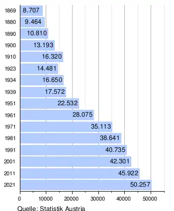 - ↑ a b Statistik Austria – Bevölkerung zu Jahresbeginn nach administrativen Gebietseinheiten (Bundesländer, NUTS-Regionen, Bezirke, Gemeinden) seit 2002 (ODS)
