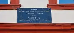 An Goethes Aufbruch nach Weimar aus ihrem Haus erinnert eine Gedenktafel am Haus Hauptstraße 196 in Heidelberg (am Marktplatz). Allerdings ist diese Zuordnung fehlerhaft, da Dorothea Delph im Jahr 1775 dieses Haus noch nicht bewohnte.