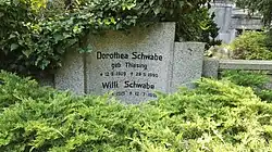 Dorothea Thiesing fand ihre letzte Ruhestätte als Dorothea Schwabe auf dem Friedhof der Dorotheenstädtischen und Friedrichswerderschen Gemeinden in der Berliner Chausseestraße 126.