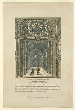 In der Regierungszeit Oliver Cromwells kam das Theater in England weitgehend zum Stillstand. Nach der Restauration vergab Karl II. Patente für „gesprochenes Drama“ an zwei Schauspieltruppen: die King’s Players von Thomas Killigrew, die ab 1663 das Drury Lane Theatre bespielten und die Duke’s Players von William Davenant, die später (1671) in das neue Dorset Garden Theatre ziehen sollten. Die Patente waren so beschaffen, dass sie jeweils auf die Erben übergehen konnten.[2]